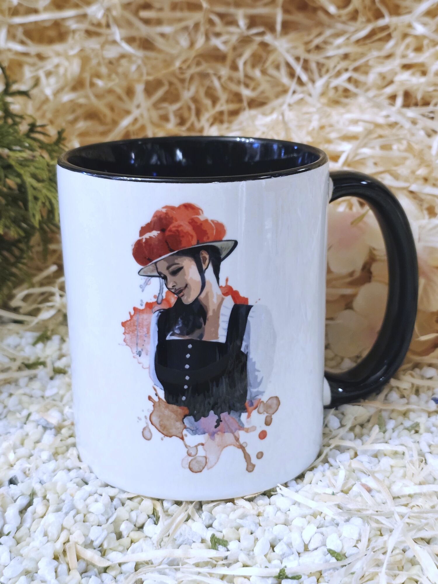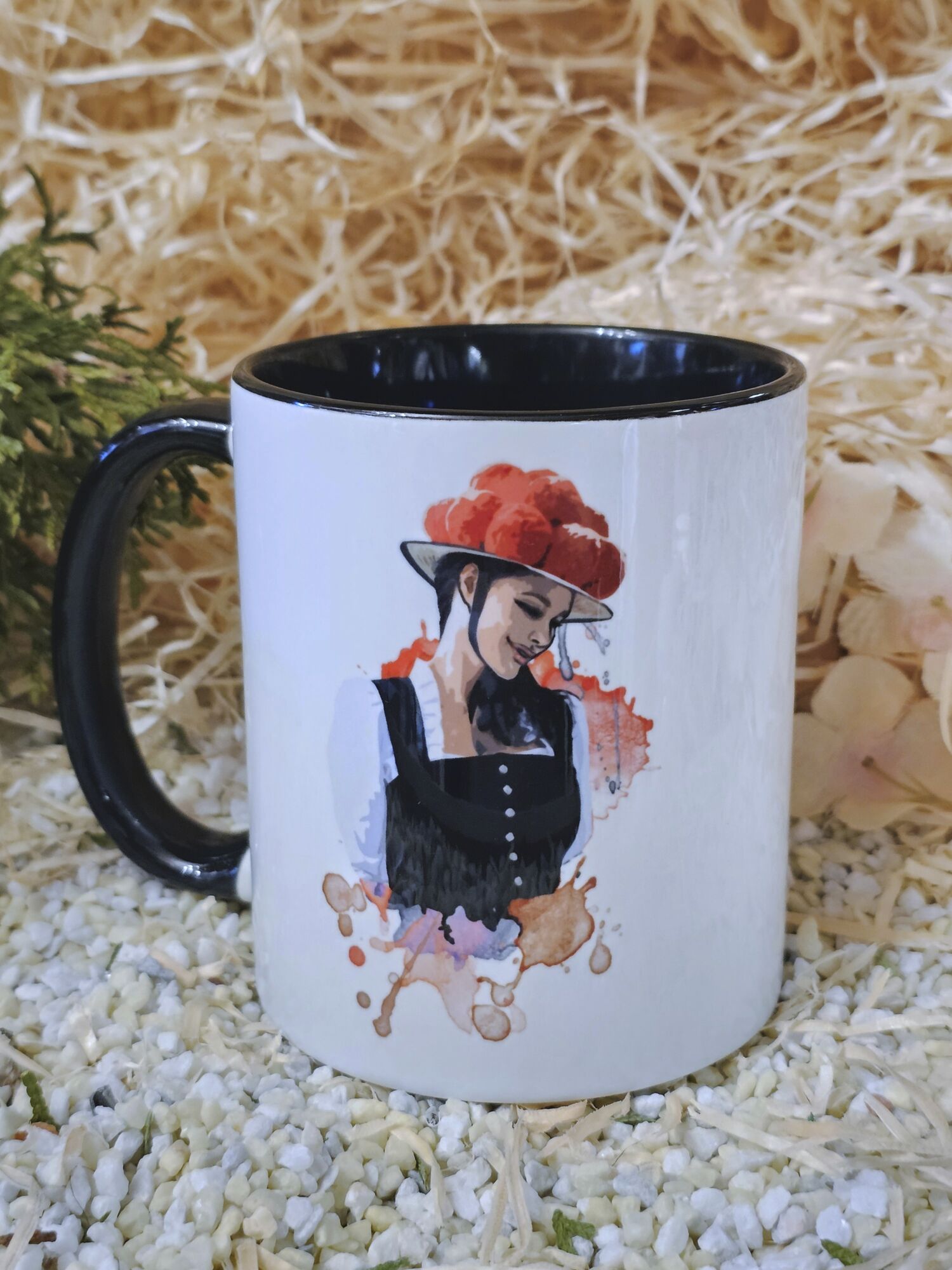 Schwarzwaldtasse Schwarzwälderin innen schwarz schwarzer Henkel