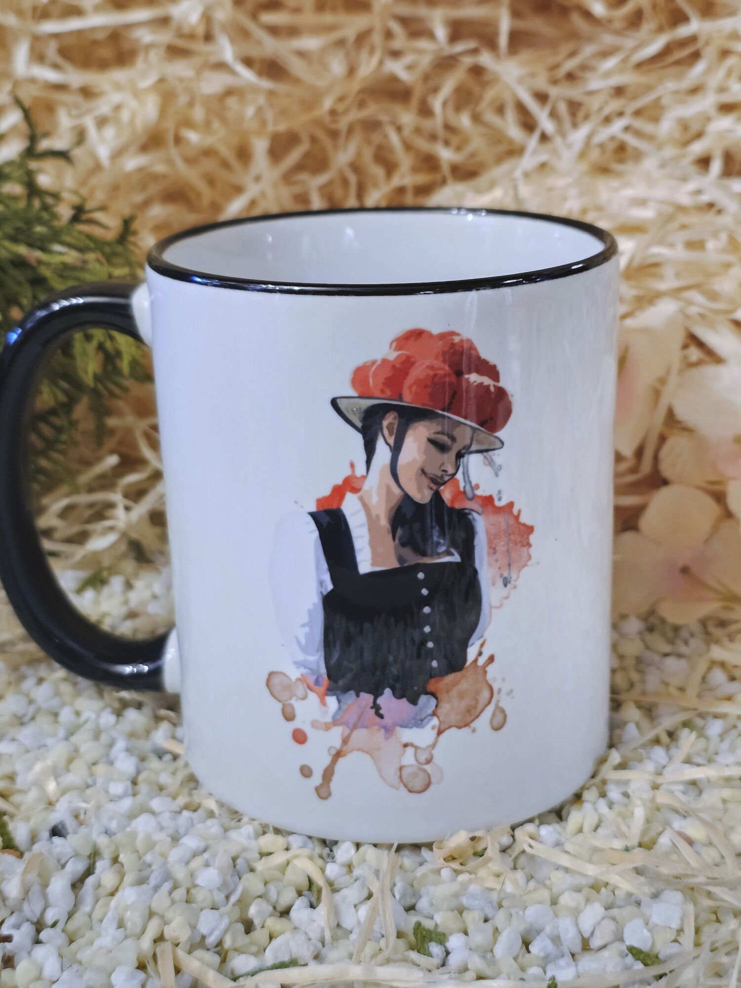 Schwarzwaldtasse Schwarzwälderin schwarzer Rand schwarzer Henkel