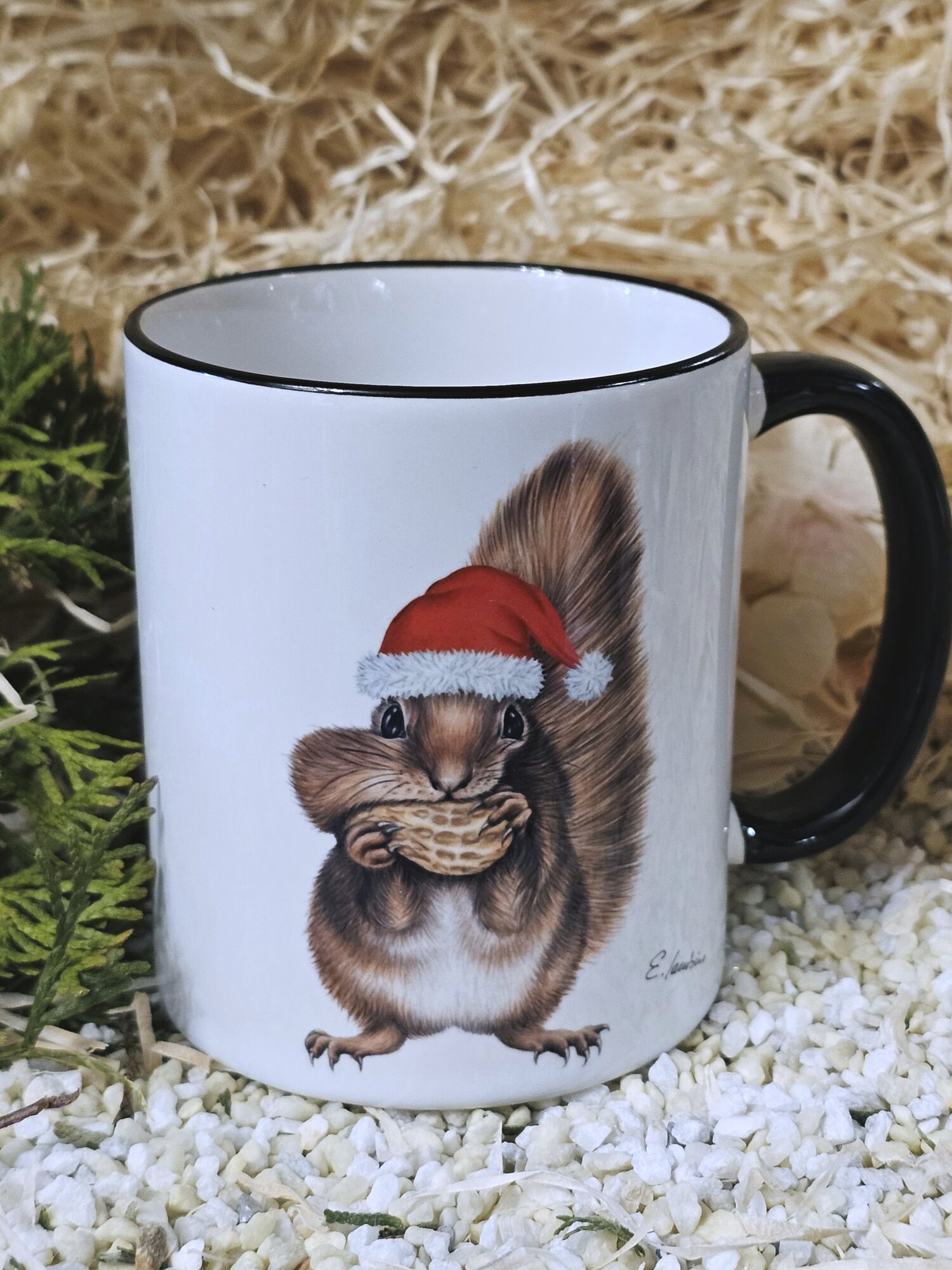 Weihnachts -Eichhörnchen schwarzer Rand ,schwarzer Henkel