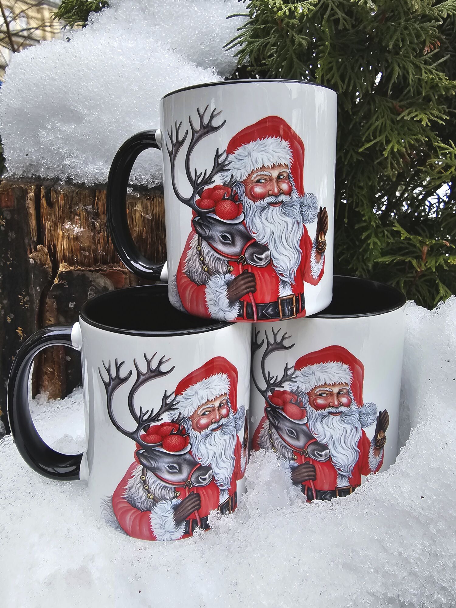 Weihnachtsmann mit Rentier innen schwarz Henkel schwarz