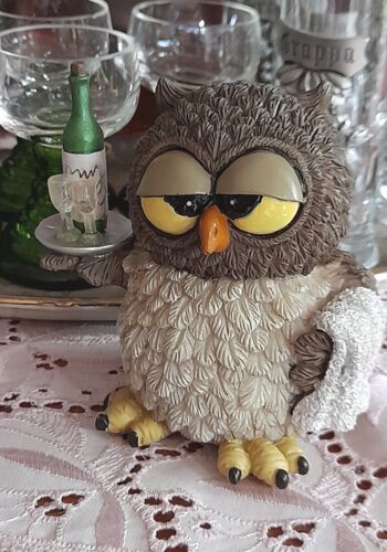 Eule " Liebesbote" mit Herz und Blumenstrauß