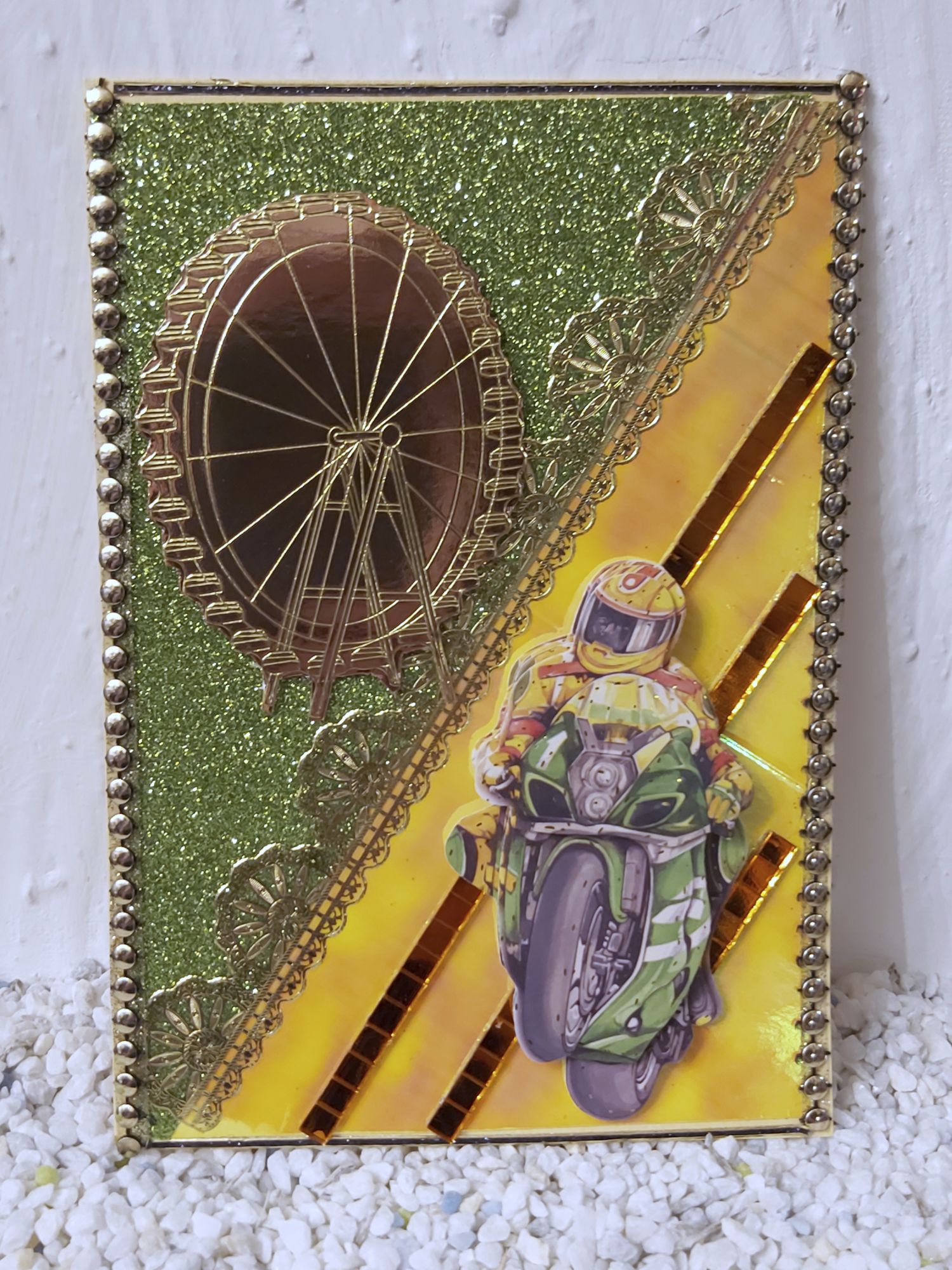 Material: Karton, Papier, Perlen, Schmucksteinchen