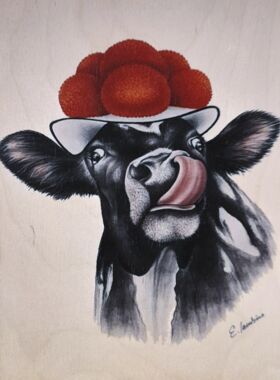 gezeichnetes Motiv mit toller Farbbrillanz auf Holz
