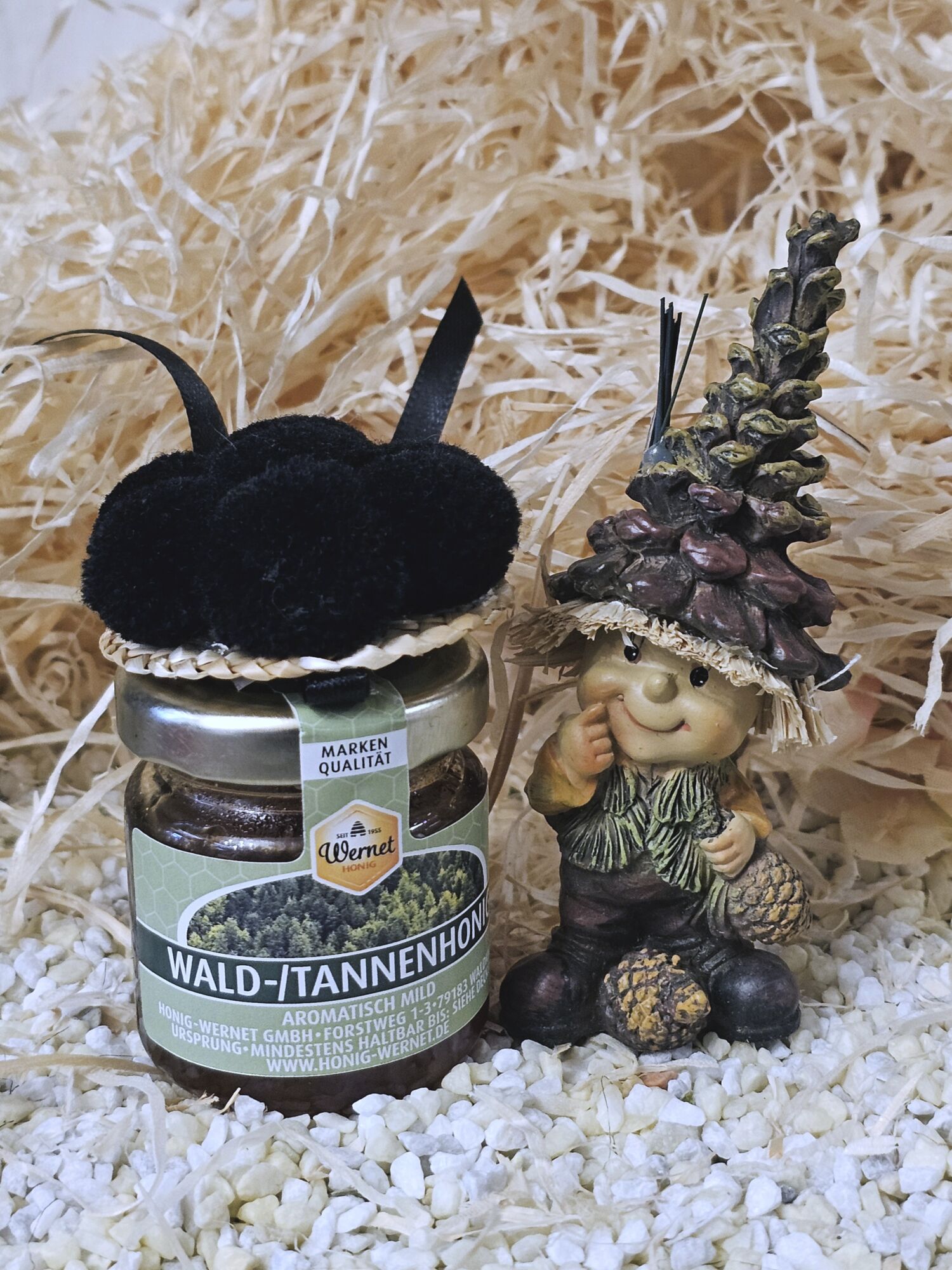 HW1002 Honig Wichtel Alois mit Waldhonig und Bollenhut schwarz