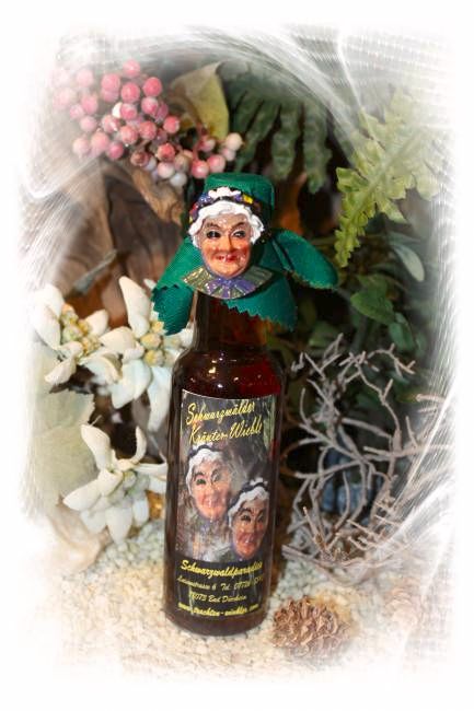 Original Schwarzwälder Kräuterlikör mit einem handgefertigtem und handbemahlten Wieble-Mäskle aus dem Schwarzwald