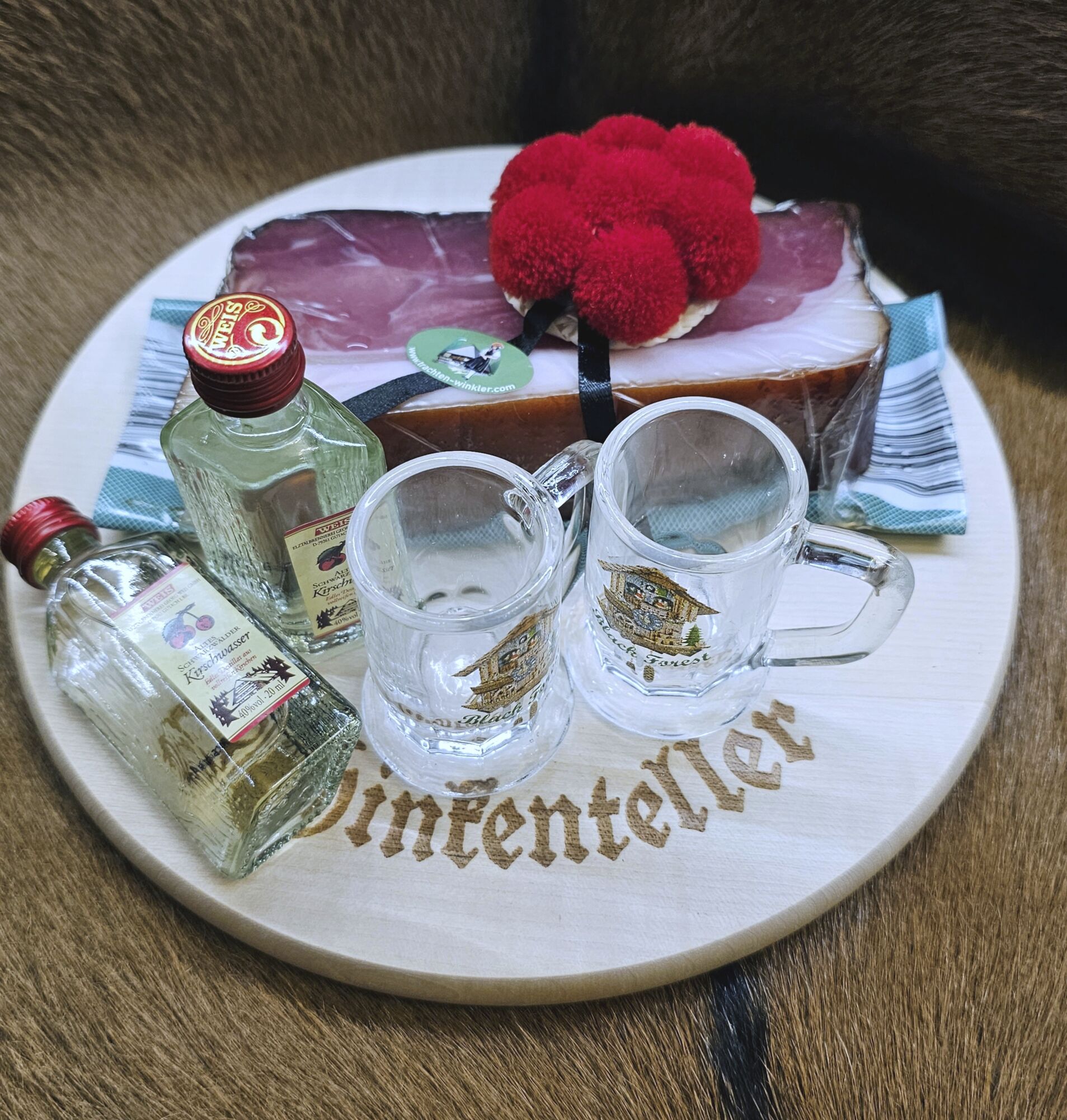 Schinken Teller Schinkenspeck, Gläser, Kirschwasser, Bollenhut