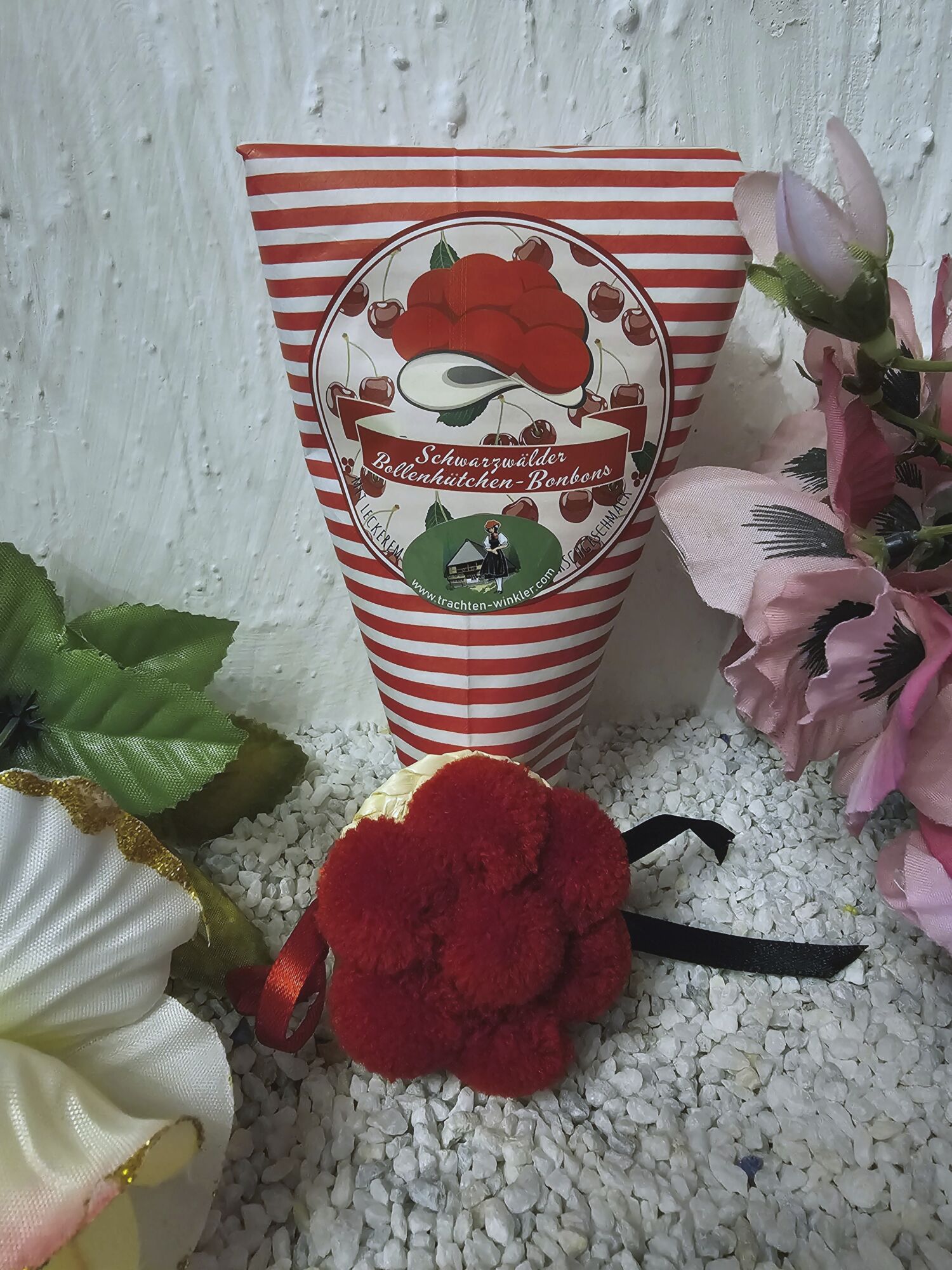 Verpackt in einer Dreieckstüte mit einem Schwarzwälder Bollenhut.