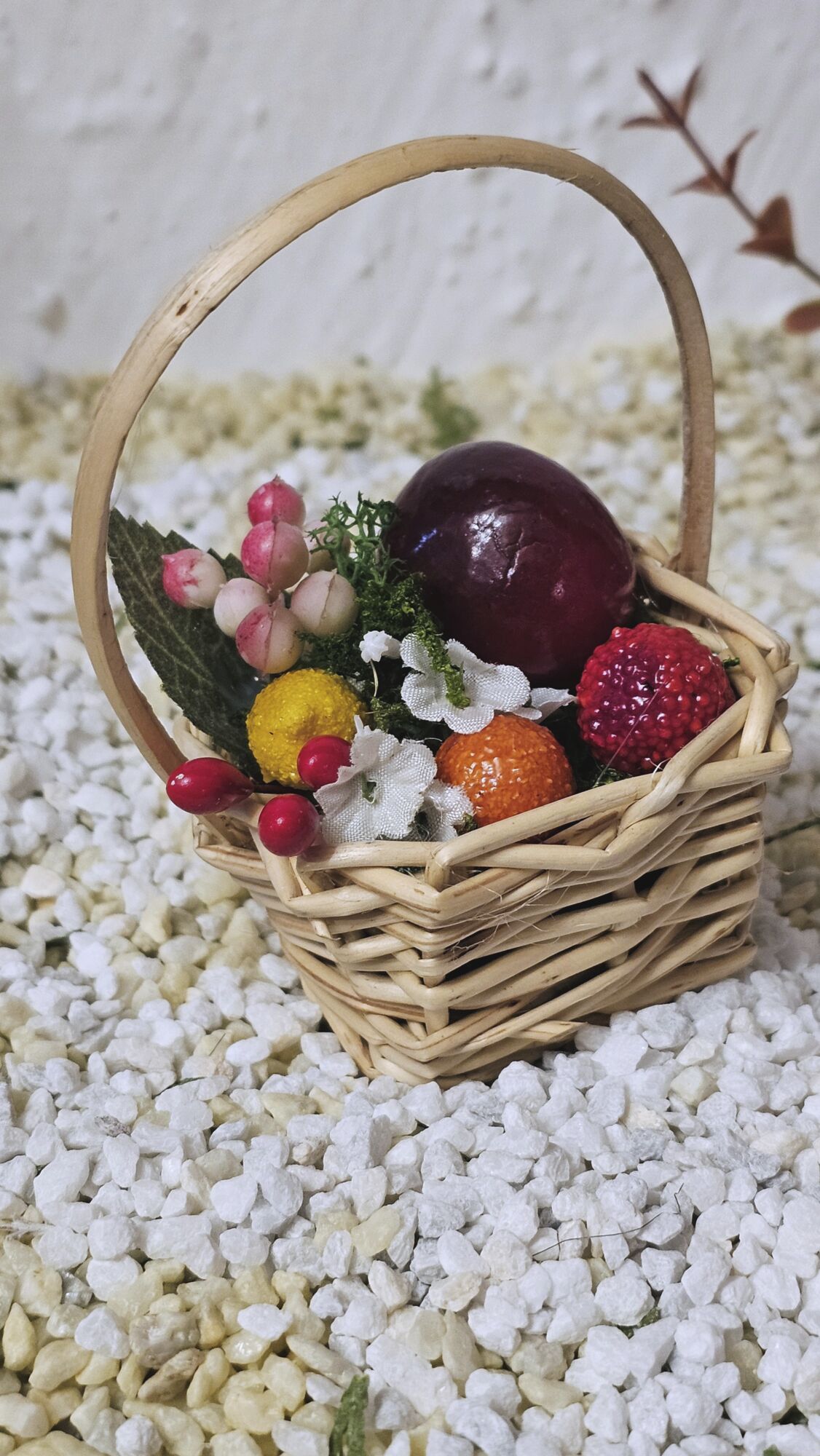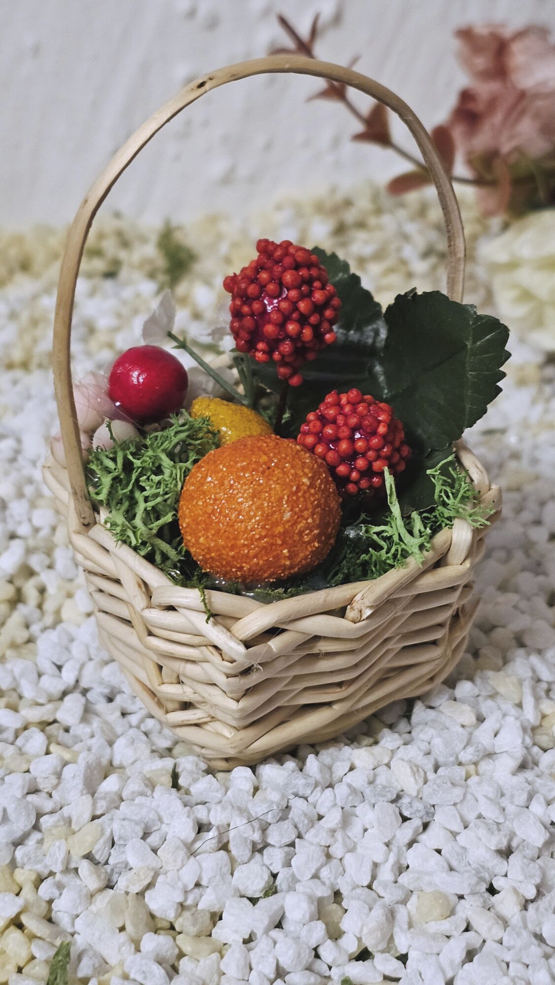 Material z.B: Holz, Stoff, Stroh, Kunstblumen, Kunstobst, Kunstgras, Kunstmoos.