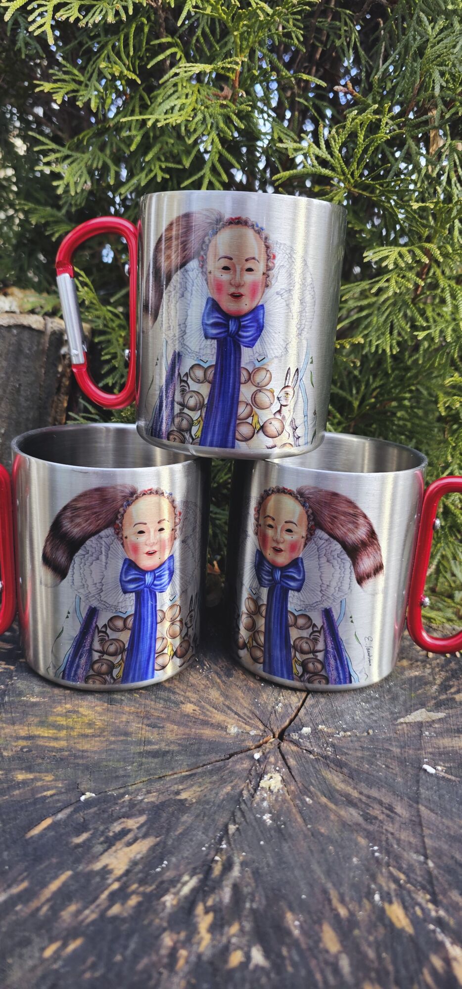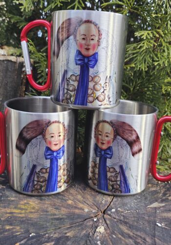 Hochwertige Edelstahltasse mit Karabiner und toller Farbbrillianz