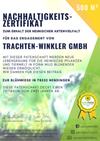 Damit wird hier bei uns in der Region eine natürliche Blühwiese angelegt, welchen vielen Insekten und anderen heimischen Tieren als Lebensraum dient. Mit der Blühpatenschaft schenken wir Mutter Natur somit ein Stück Zukunft. Für uns als Unternehmen ist diese Blühpatenschaft eine willkommene Gelegenheit, unserer Verantwortung und Umweltbewusstsein Ausdruck zu geben und uns für die Region zu engagieren.