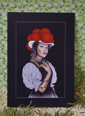 Postkarte Schwarzwald Alpaka mit Bollenhut