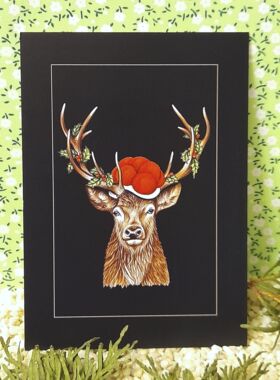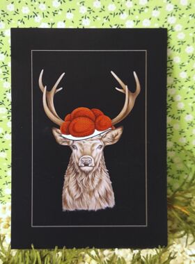 Postkarte Schwarzwald - Hirsch mit Bollenhut