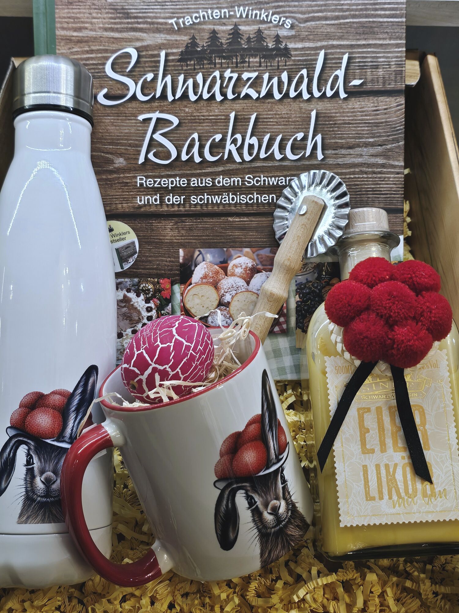 Schwarzwaldbox Osterbox Schwarzwaldbackbuch, Hasentasse Hasenflasche