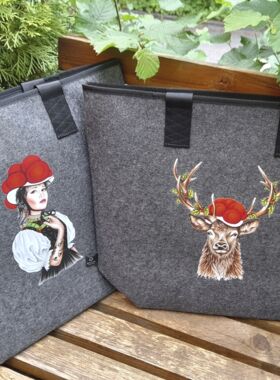 Filztasche Schwarzwald doppelt Hirsch und Schwarzwälderin