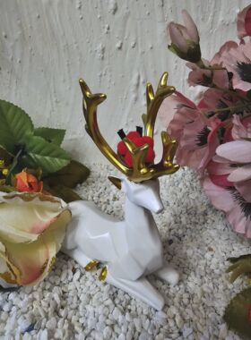 Hirsch Hirschsprung liegend Bollenhut weis-gold