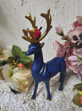 Hirsch Hirschsprung stehend Bollenhut blau -gold