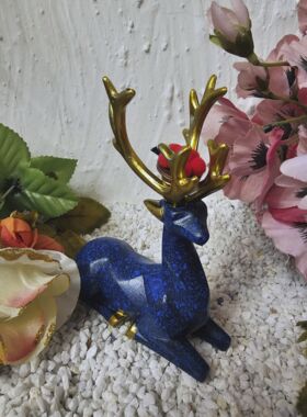 Hirsch Hirschsprung liegend Bollenhut blau-gold