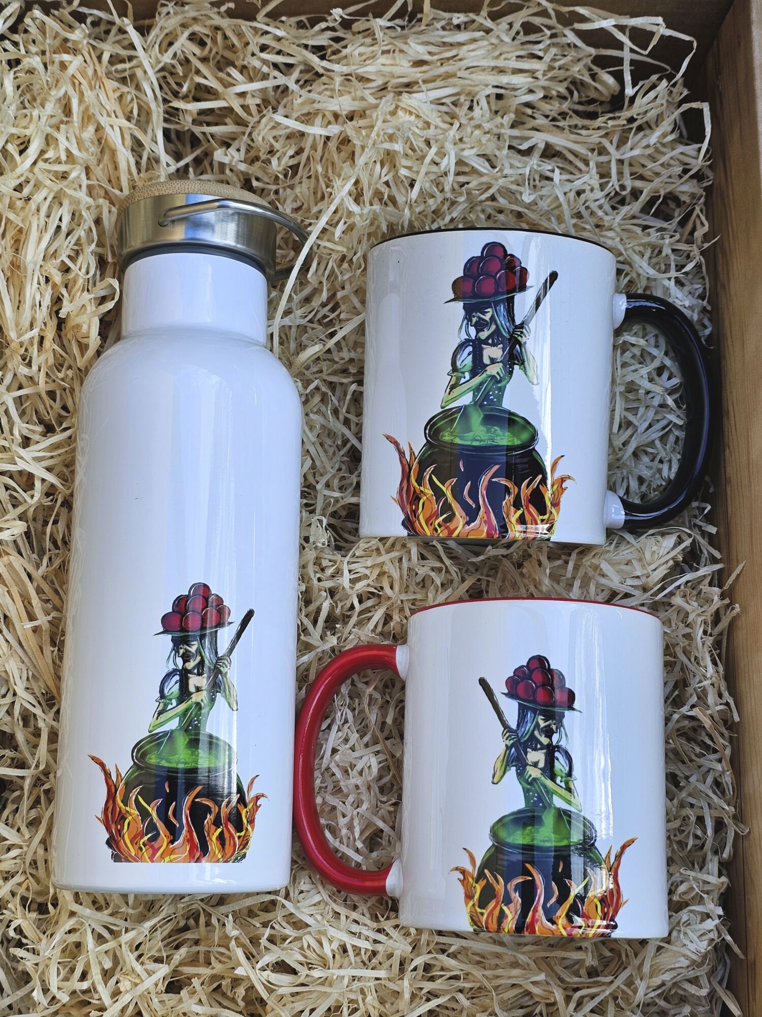 1 Thermosflasche weiss mit Bambusdeckel 500ml Schwarzwaldhexe