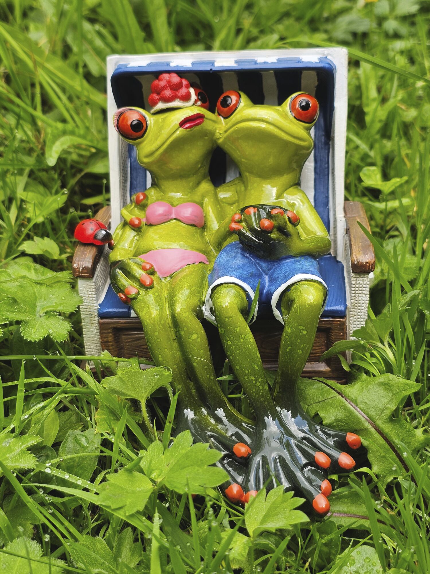 Glücksfrösche im Strandkorb, den Urlaub geniessen.