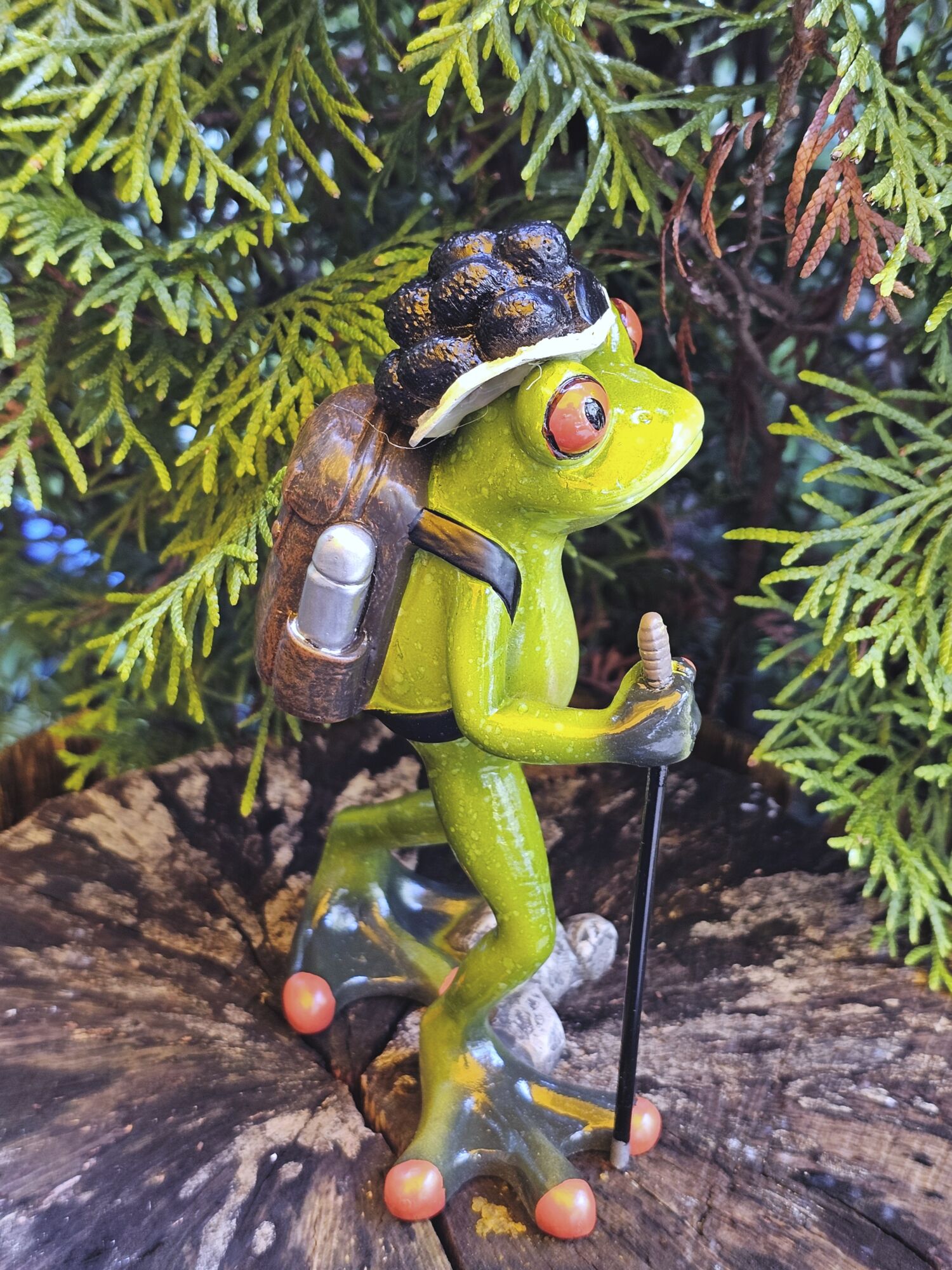 Glücksfrosch Wanderer mit schwarzem Bollenhut groß3
