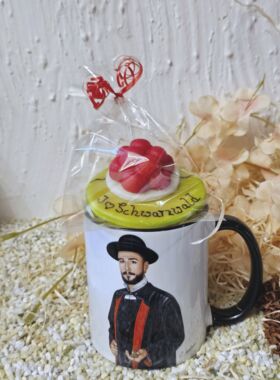 Hier bieten wir Ihnen edle Schwarzwaldtassen gefüllt mit feinsten Leckereien.
