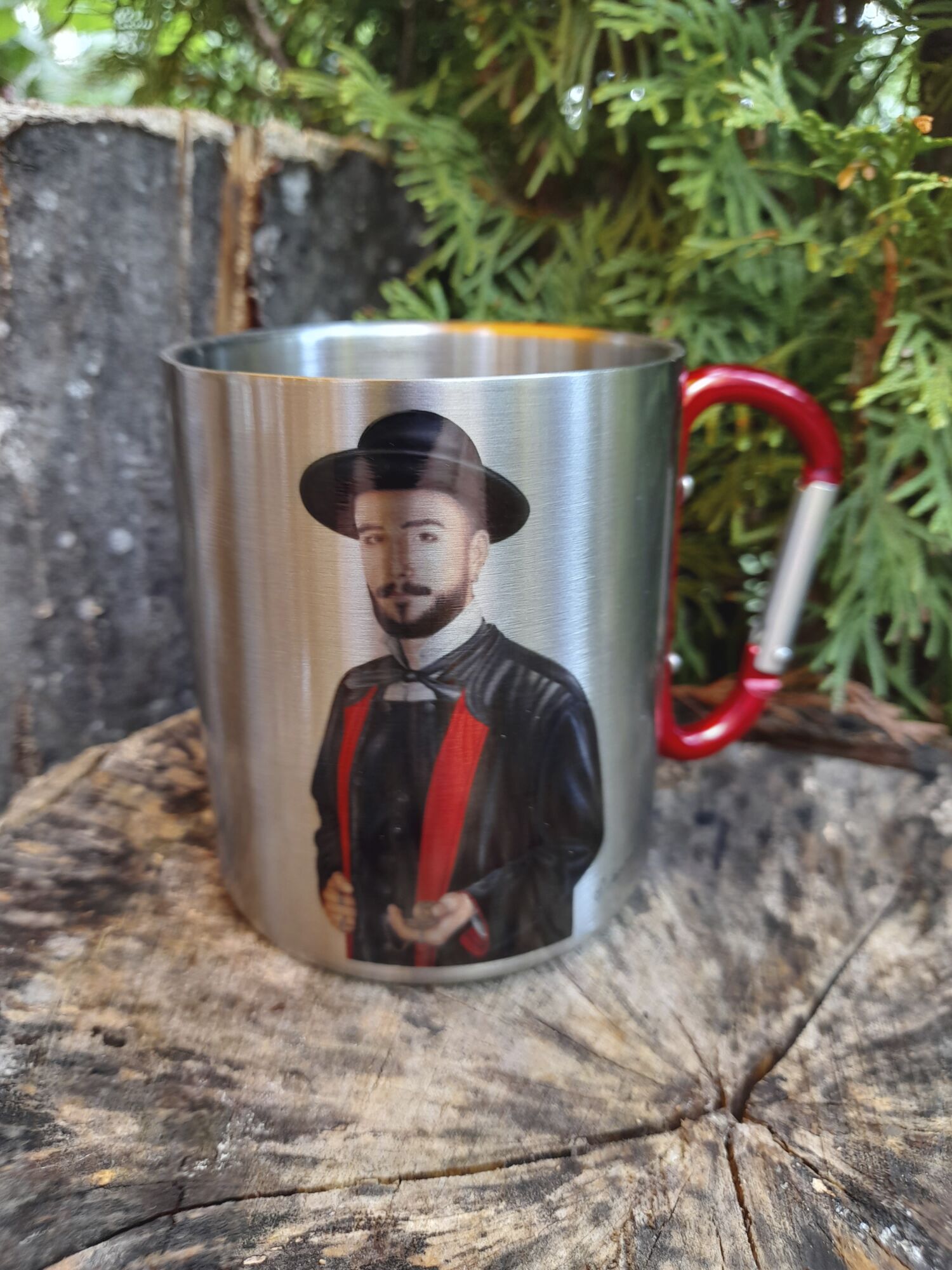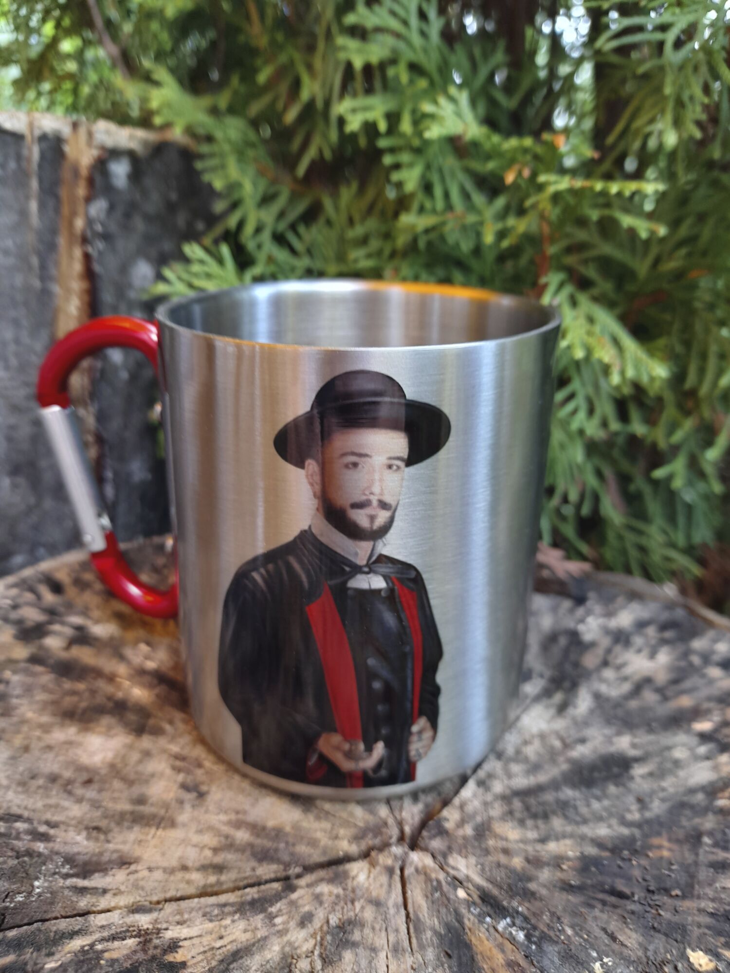 Hochwertige Edelstahltasse mit Karabiner und toller Farbbrillianz