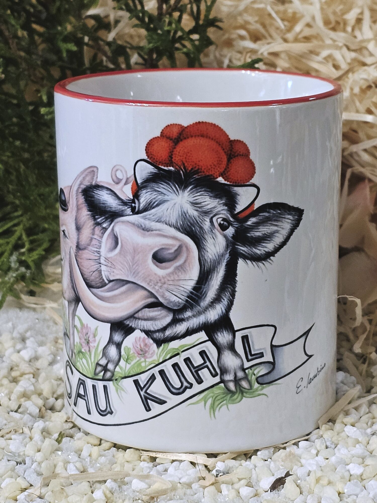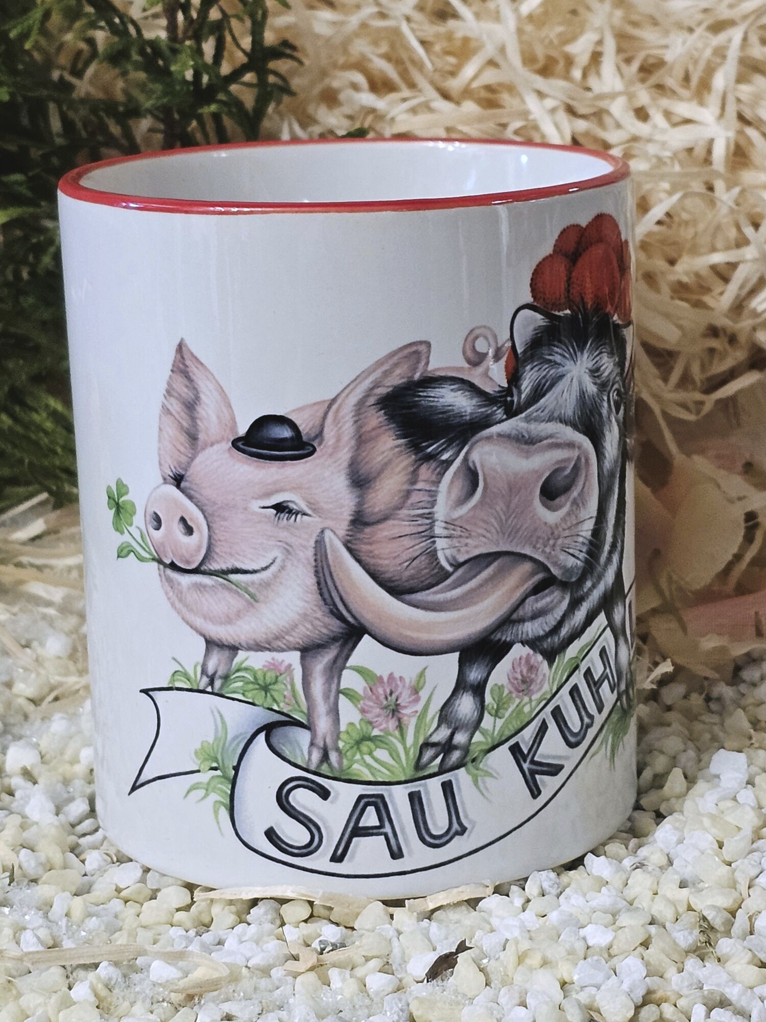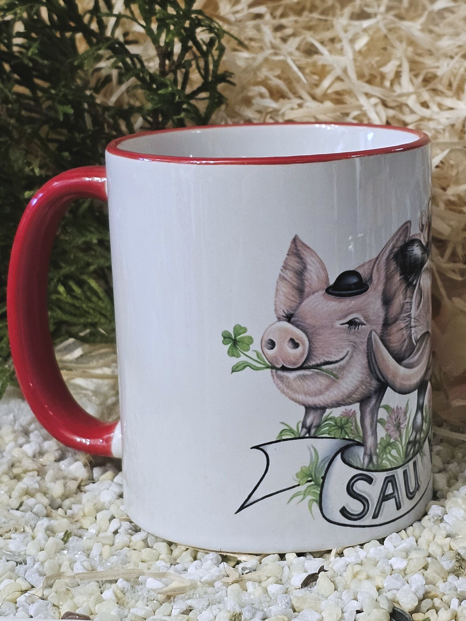 Schwarzwaldtasse Sau Cool roter Rand roter Henkel