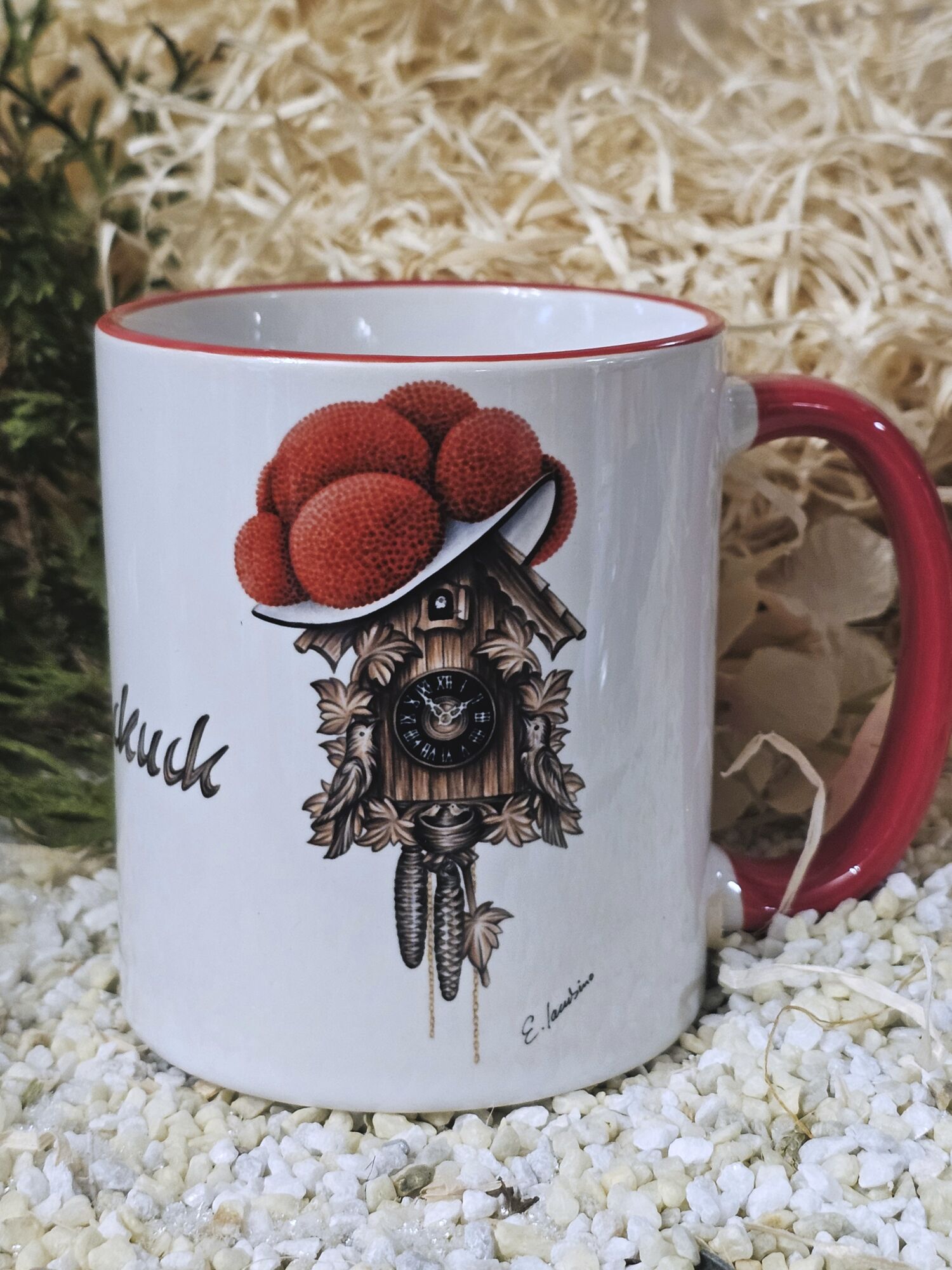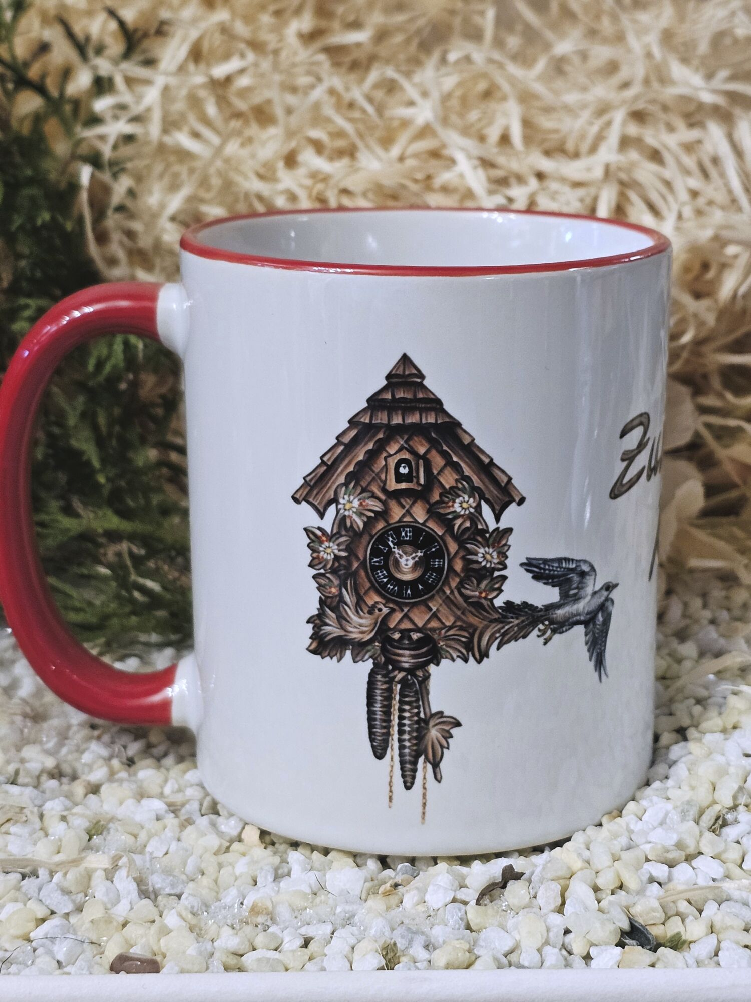 Schwarzwaldtasse Zum Kuckuck roter Rand roter Henkel