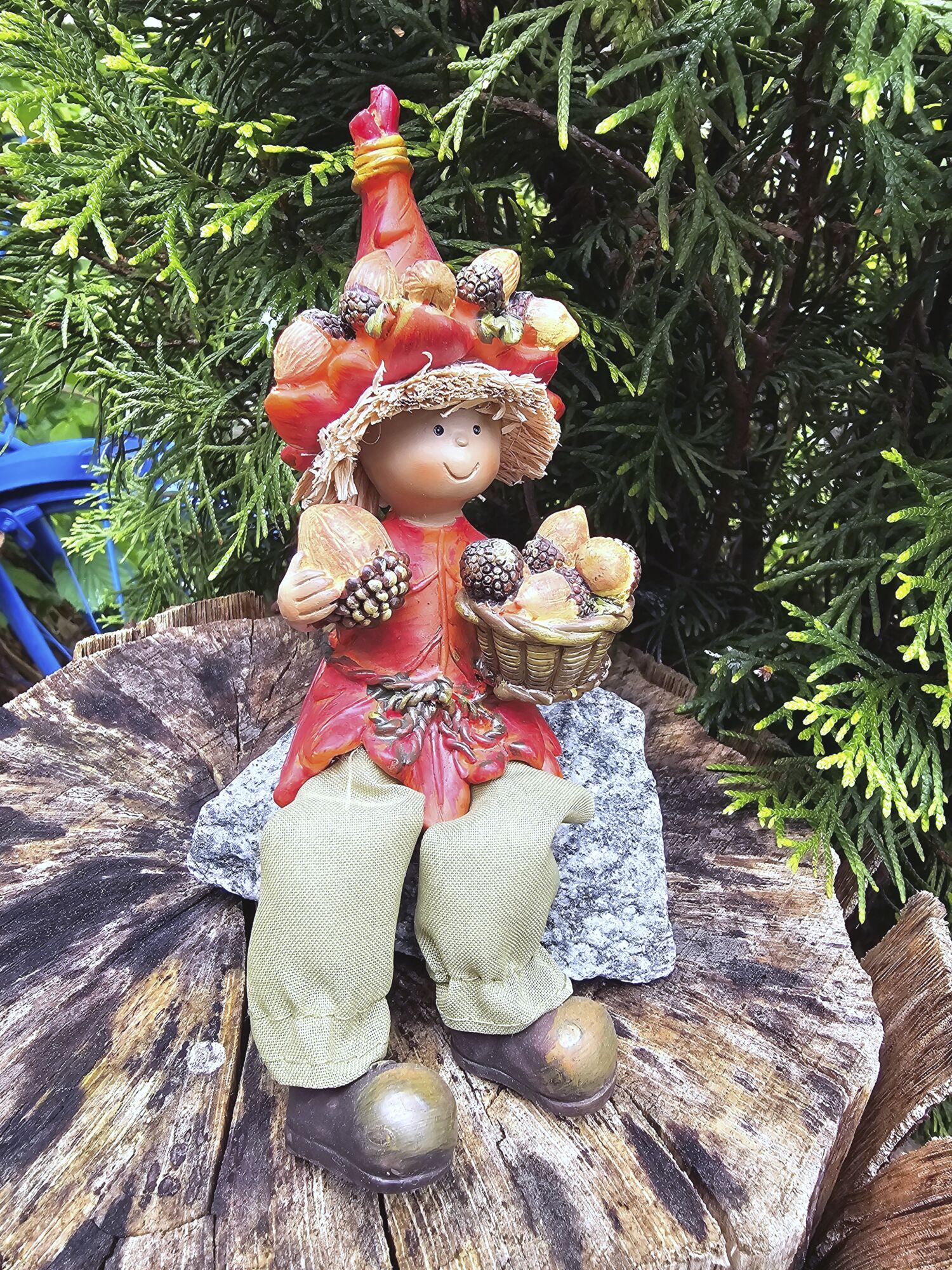 SCHWT122 Wichtel mit Schlamperbeinen und Eichelkorb